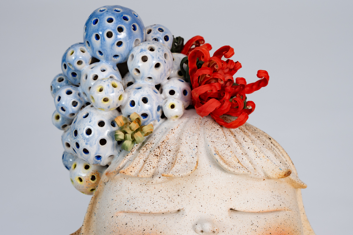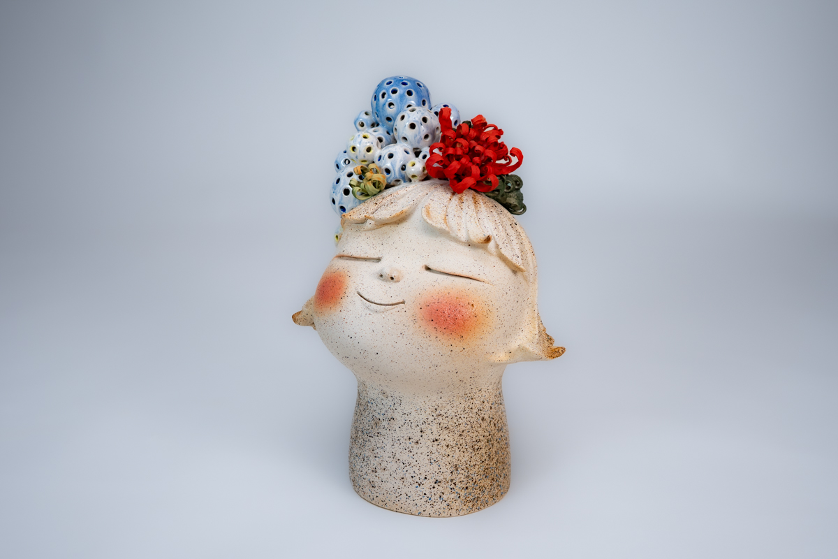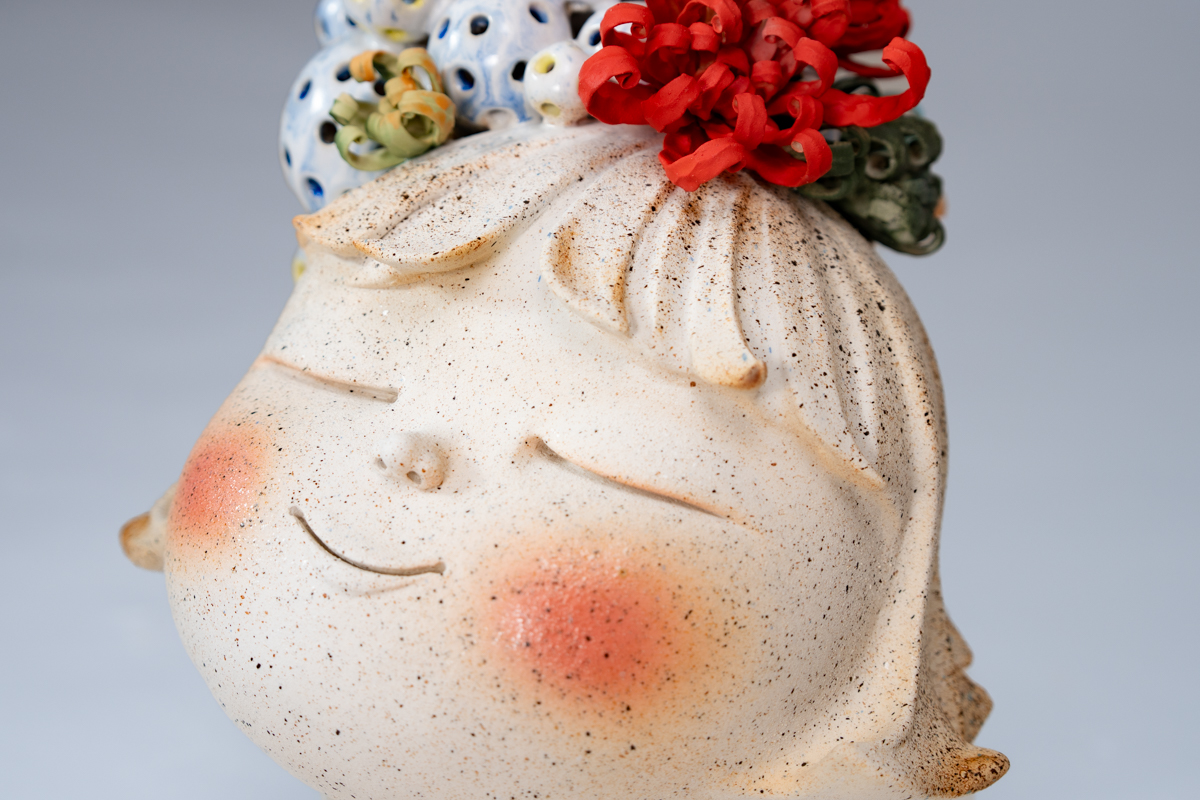 《愛做白日夢》以天真的神情與紅暈的臉龐,呈現一種單純而浪漫的想像力。頭頂的花象徵靈感與希望,在白日夢裡持續生長、綻放。