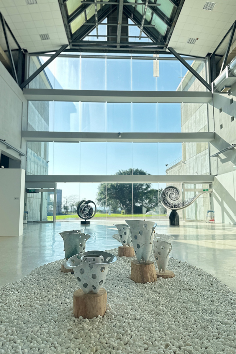 彭雅美首次以大型雕塑的創作形式、挑戰高難度的陶藝雕塑技術,作品跳脫出物件(Object)思考進而嘗試與空間對話,展現其獨特的創作風格和對生命的深刻思考。本次作品包含彭雅美歷年各時期代表作品,以及2010年之後在國際發光發熱的蕨類系列,還有疫情後全新創作。此次彭雅美結合陶土、不鏽鋼和銅的大膽嘗試,她克服了金屬材料的技術極限,彰顯了她對金屬材質的傑出的駕馭能力,充分體現了彭雅美作為一位女性藝術家的深邃視野與藝術追求,並突顯她為台灣陶藝雕塑界帶來的突破與震撼。