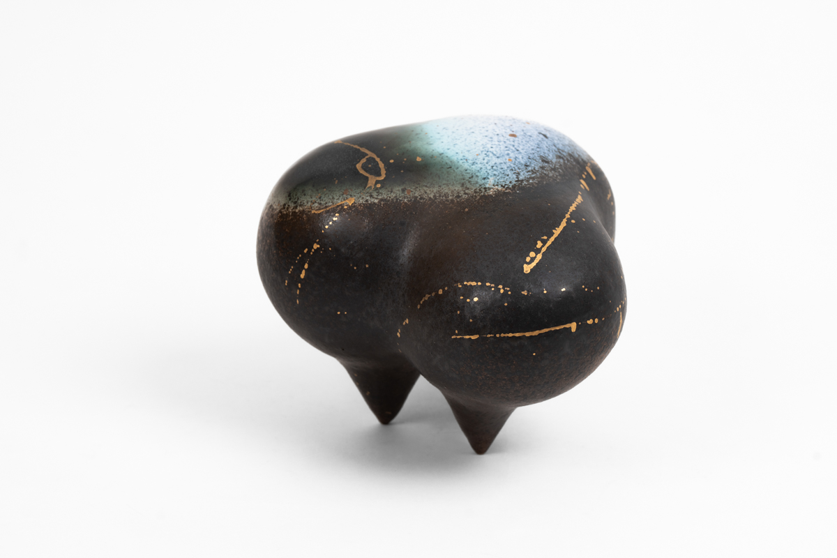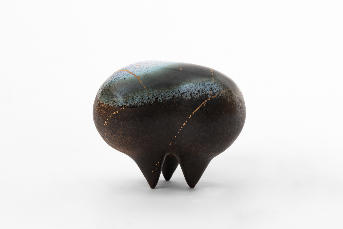 《種子旅程-森林系列》以深沉的黑與綠為主調,點綴著金色與水藍的光澤,營造出一種神秘而靜謐的氛圍。它們宛如森林深處的夜色,閃爍著星辰與露珠的光點,水藍的暈染則像是時間的流影,讓人感受到生命中隱而不顯的神秘力量。