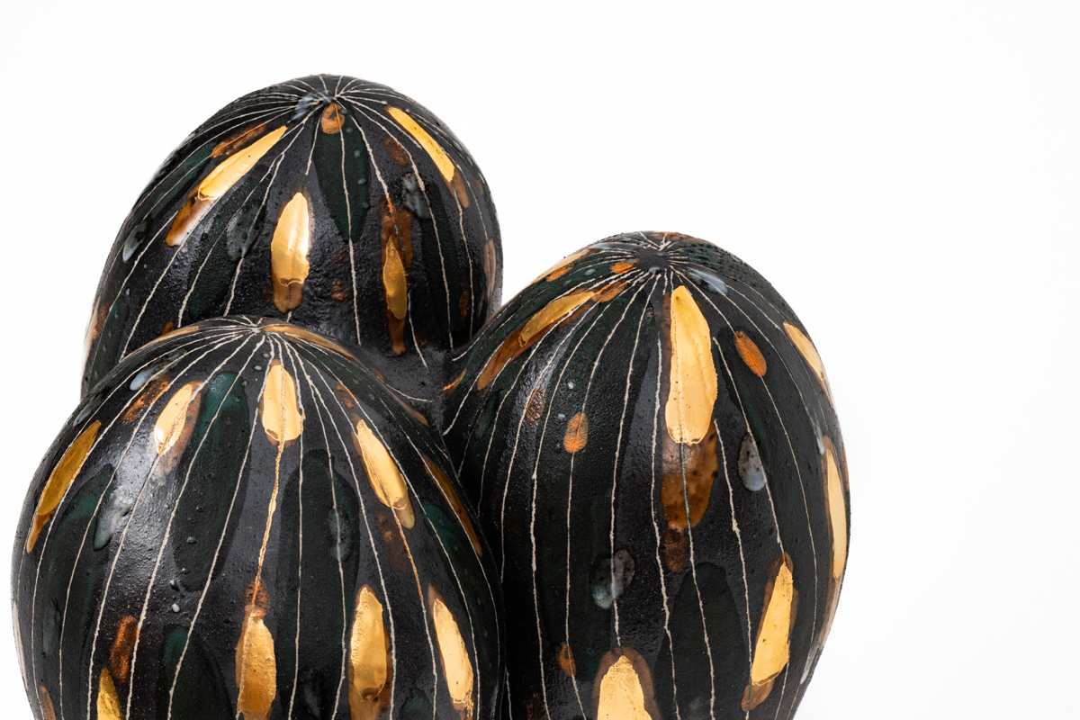 作品彷彿乘光而生,在時間中轉化;以身體為容器、山海為滋養,形塑出自由多變的語彙。線條柔軟卻堅實,回應來自大地深處的能量。